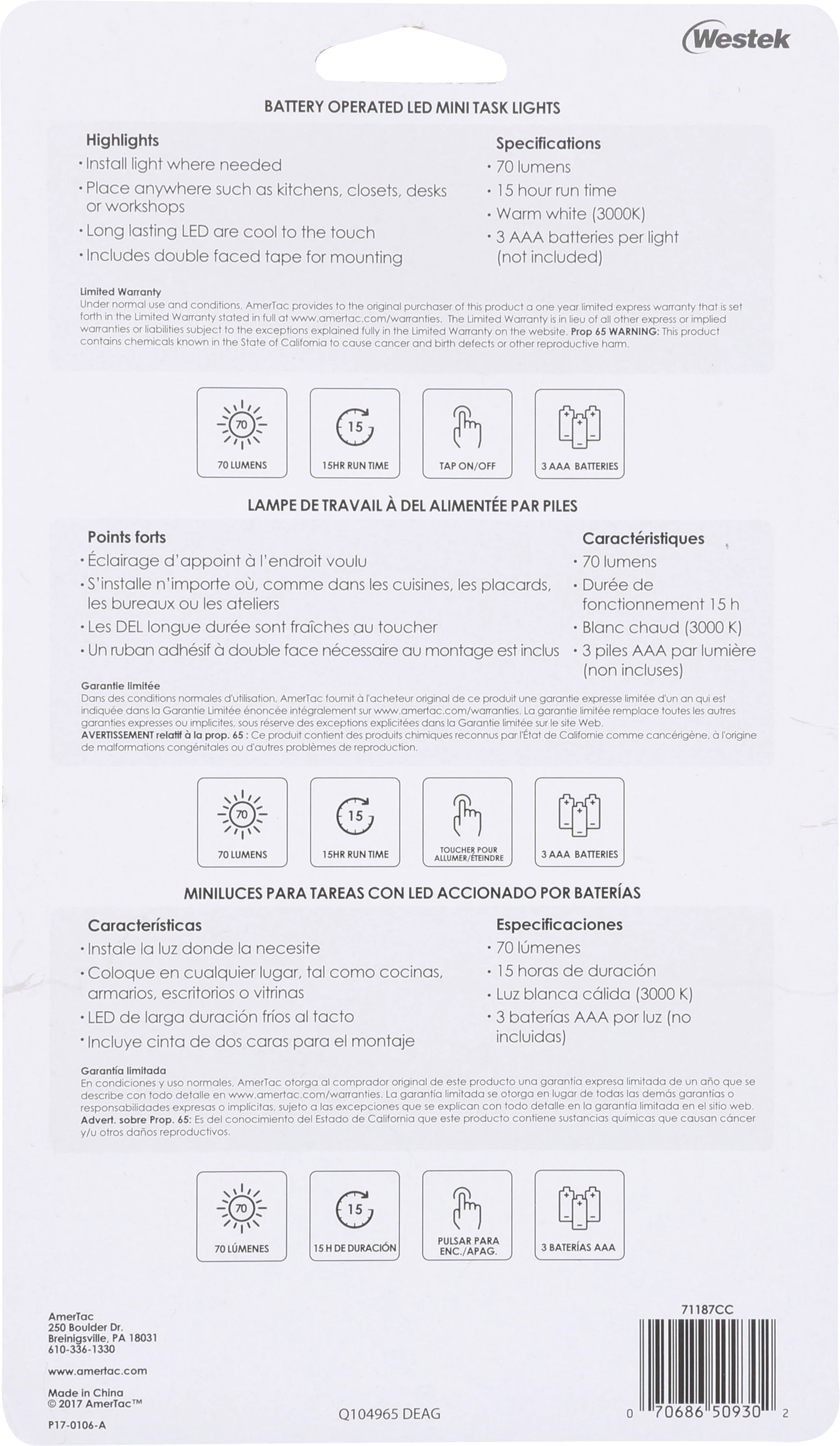 Illuminate work spaces and recreation areas with these battery operated Mini Task Bars. Their small, slim design makes them portable and versatile to be installed anywhere additional light is needed or used for convenient light on the go.