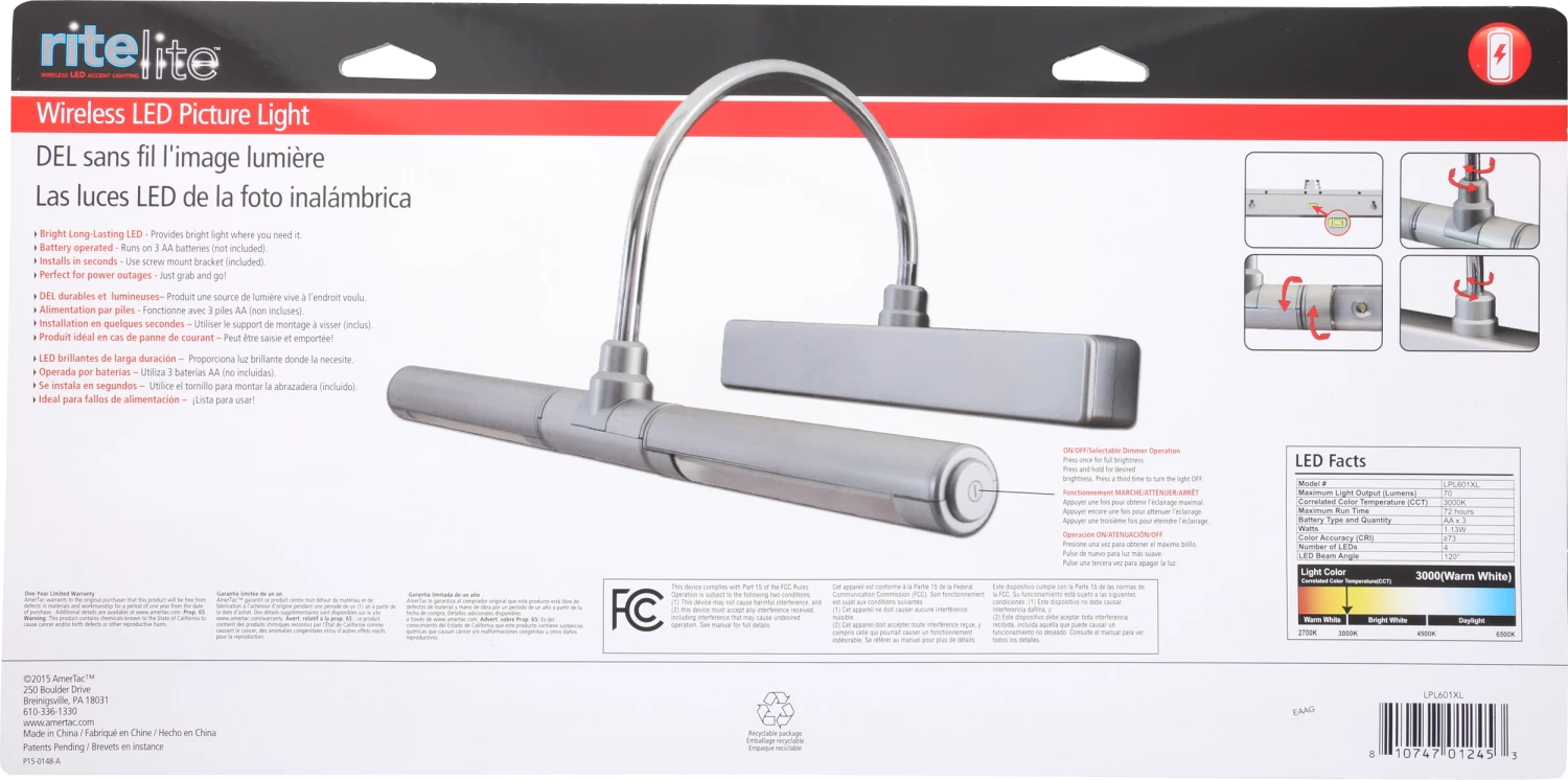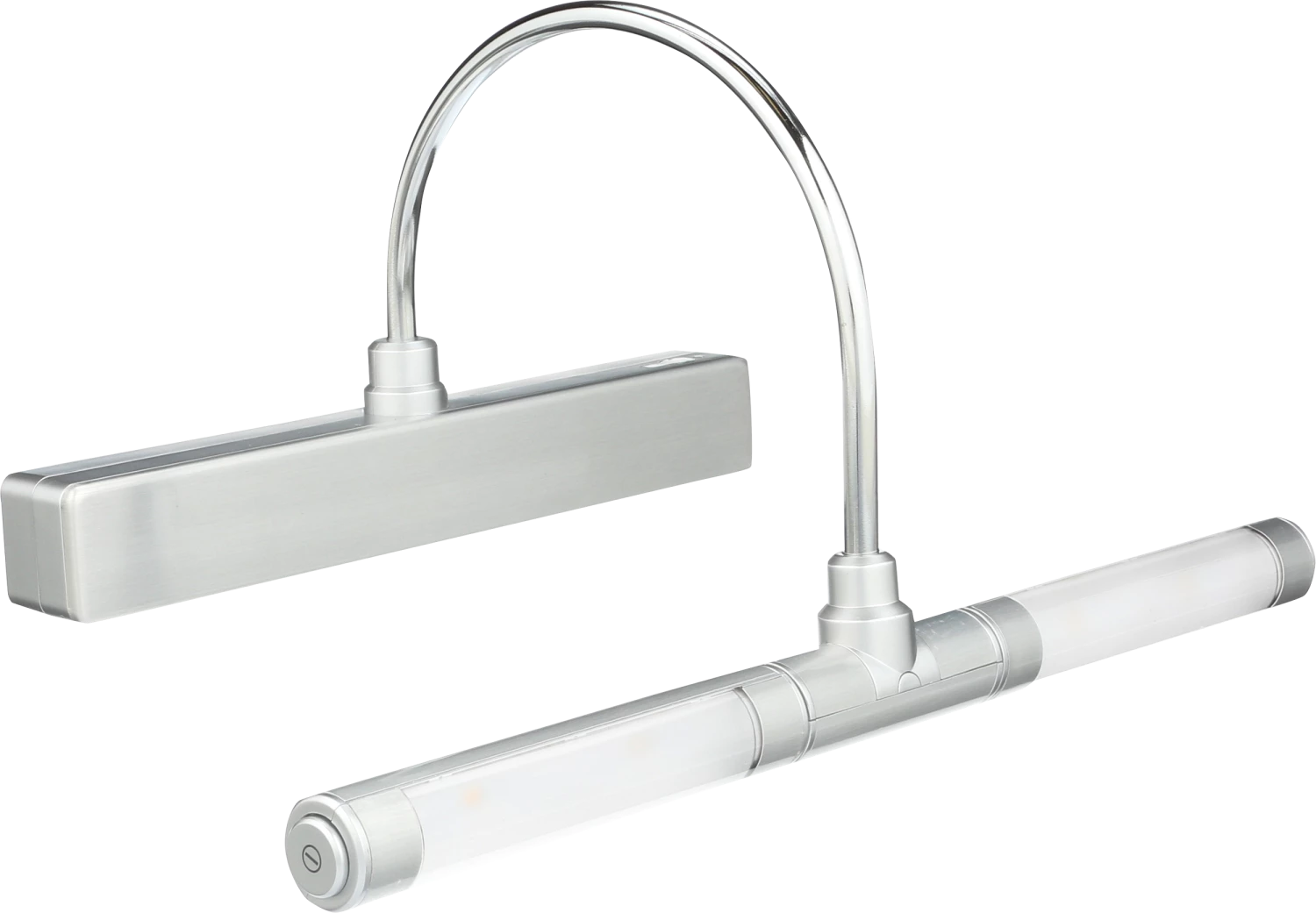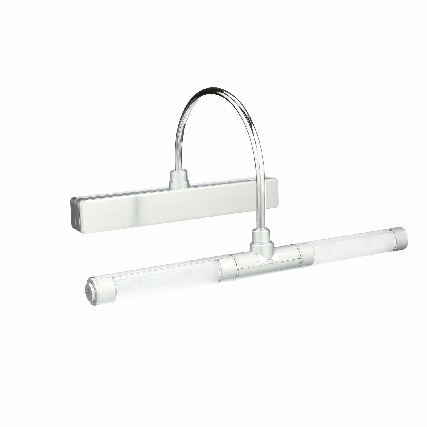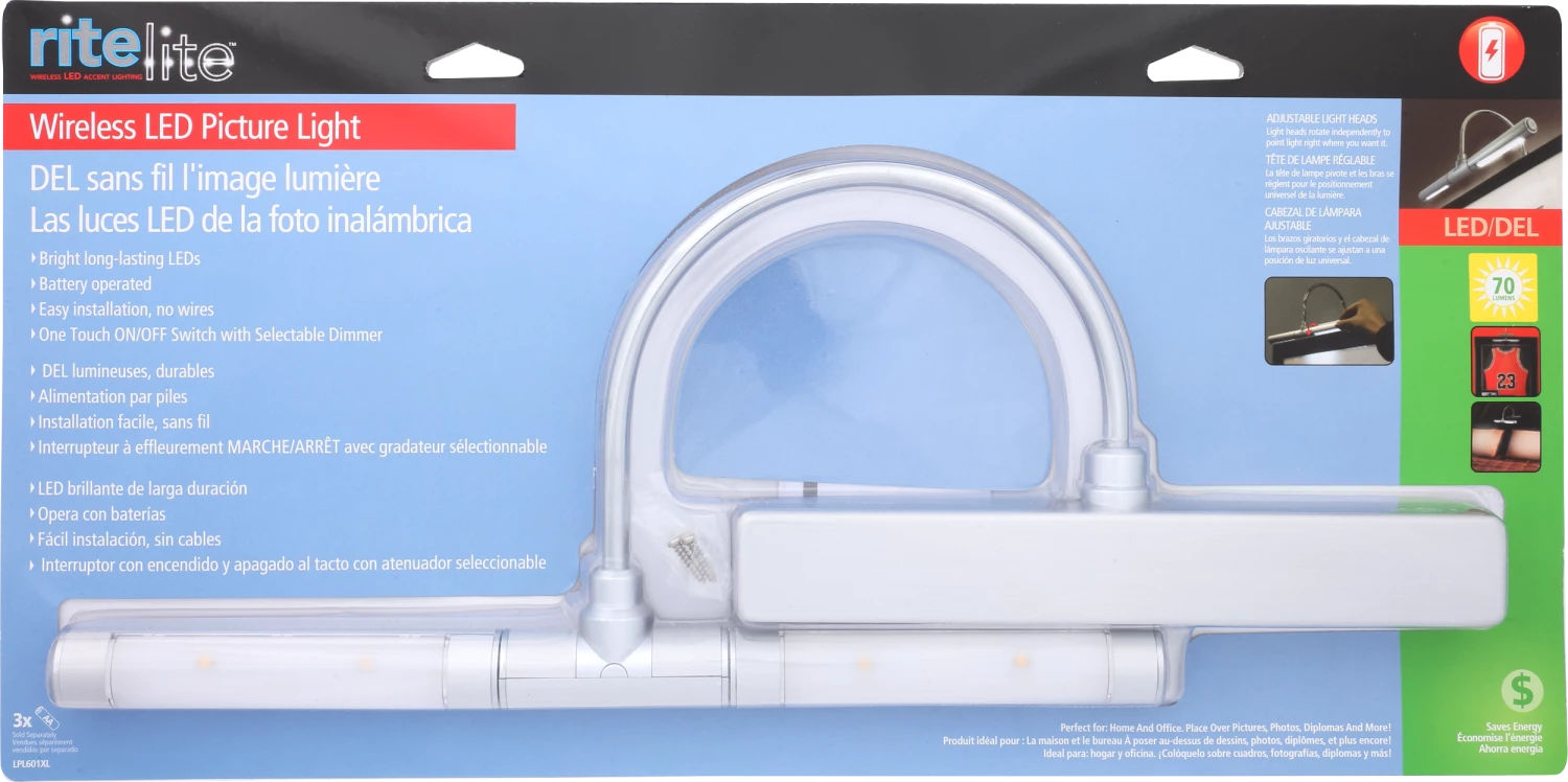 LED picture light illuminates paintings and pictures without ugly wires. With independent, rotating heads you can adjust the light ensuring perfect coverage. A built-in bubble level makes installation simple an perfect.