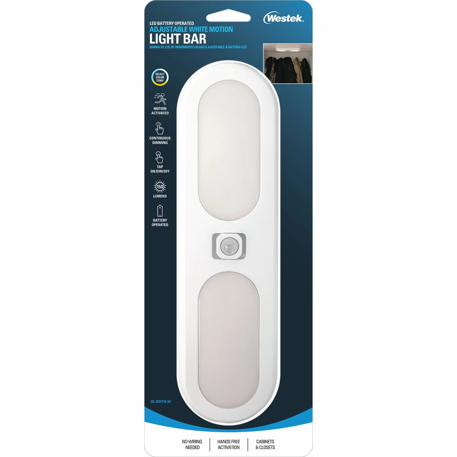 The Westek Motion Activated Light BarΒ offers the ability to customize the white temperature of the light with the added convenience ofΒ having a pivotingΒ motion activated sensor. Add light in and under cabinets, closets, pantries, laundry rooms, hallways, garages, shelving and more