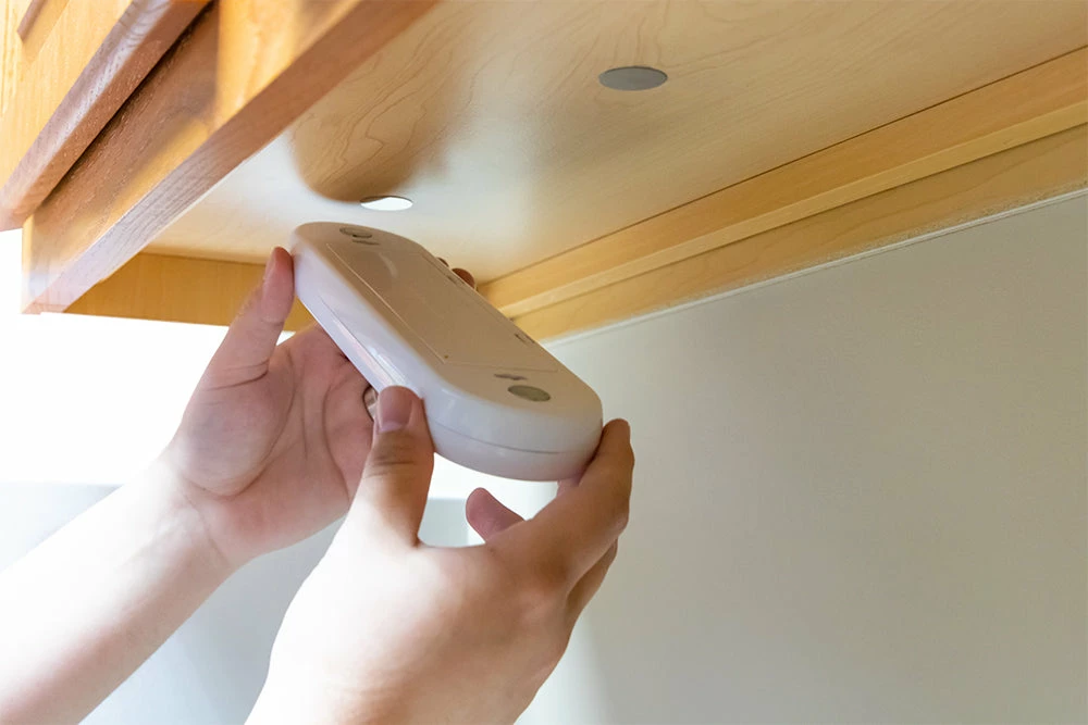 MAGNET MOUNTΒ –Β Magnets securely hold the light to the included adhesive-backed metal plates, providing easy repositioning and removal for changing batteries