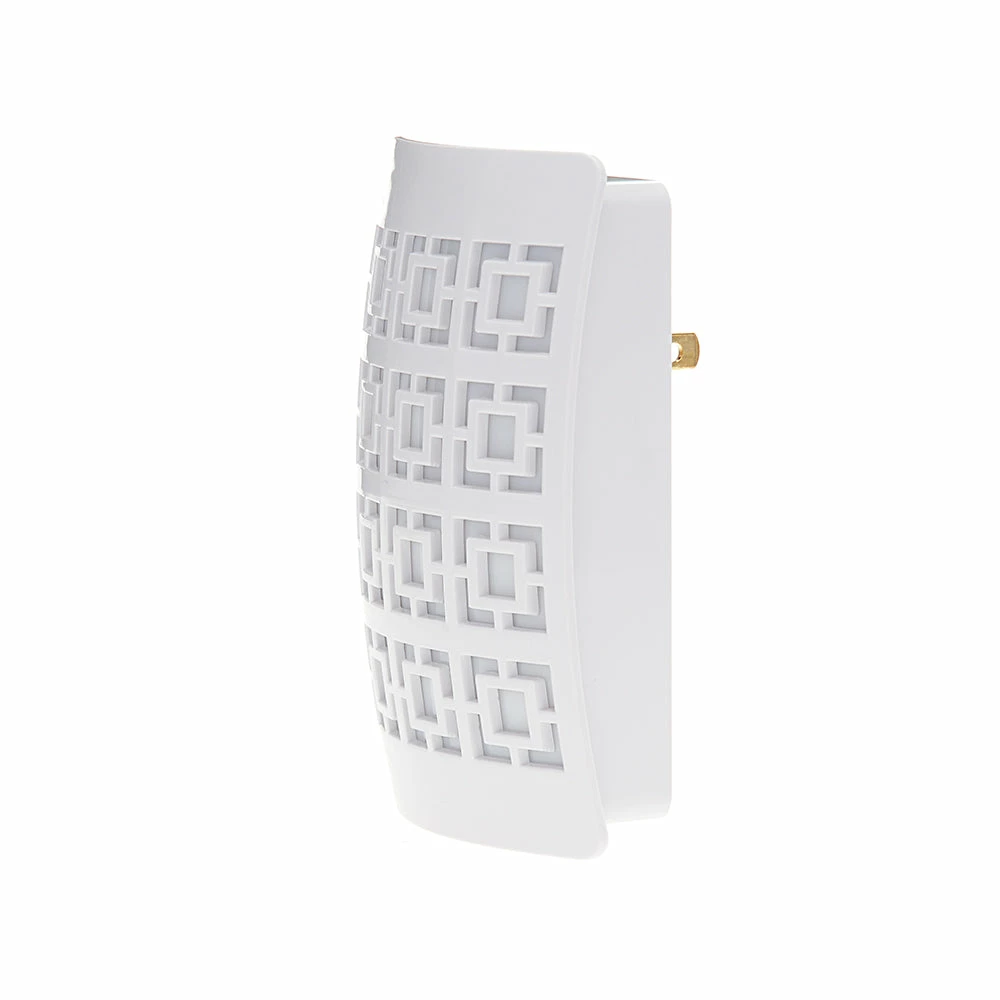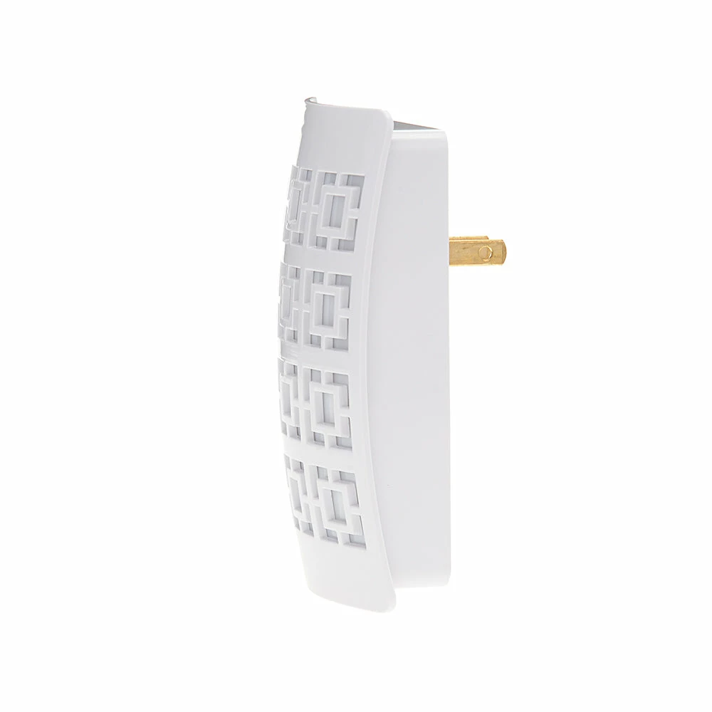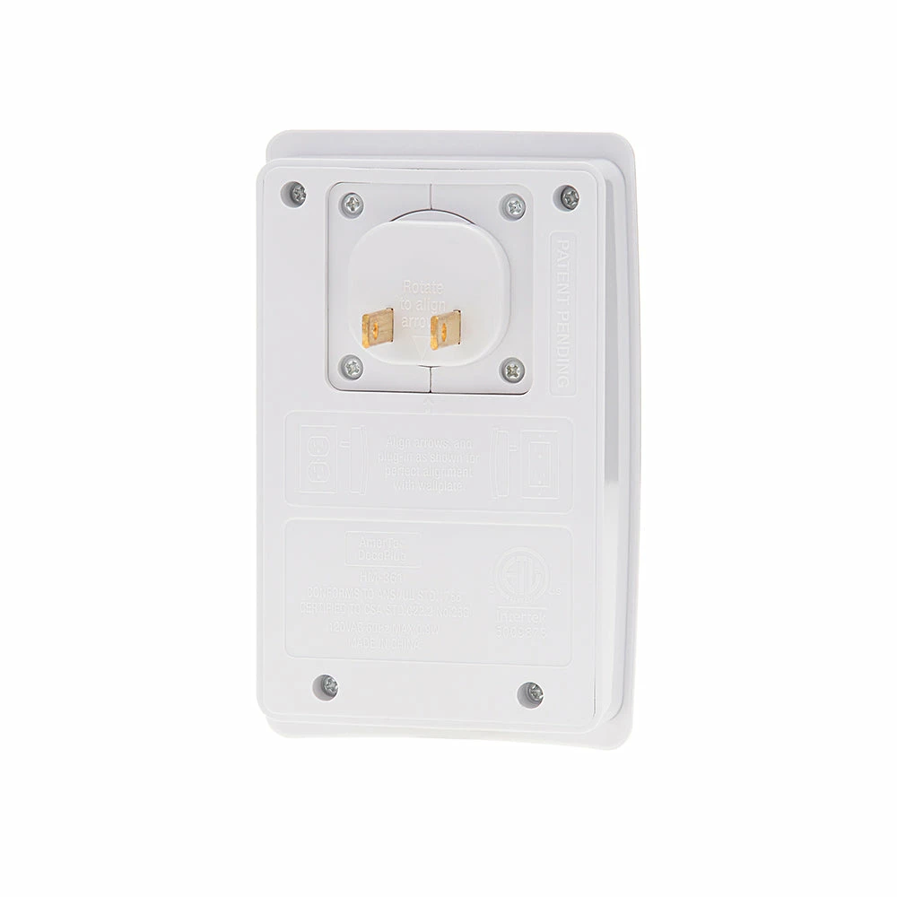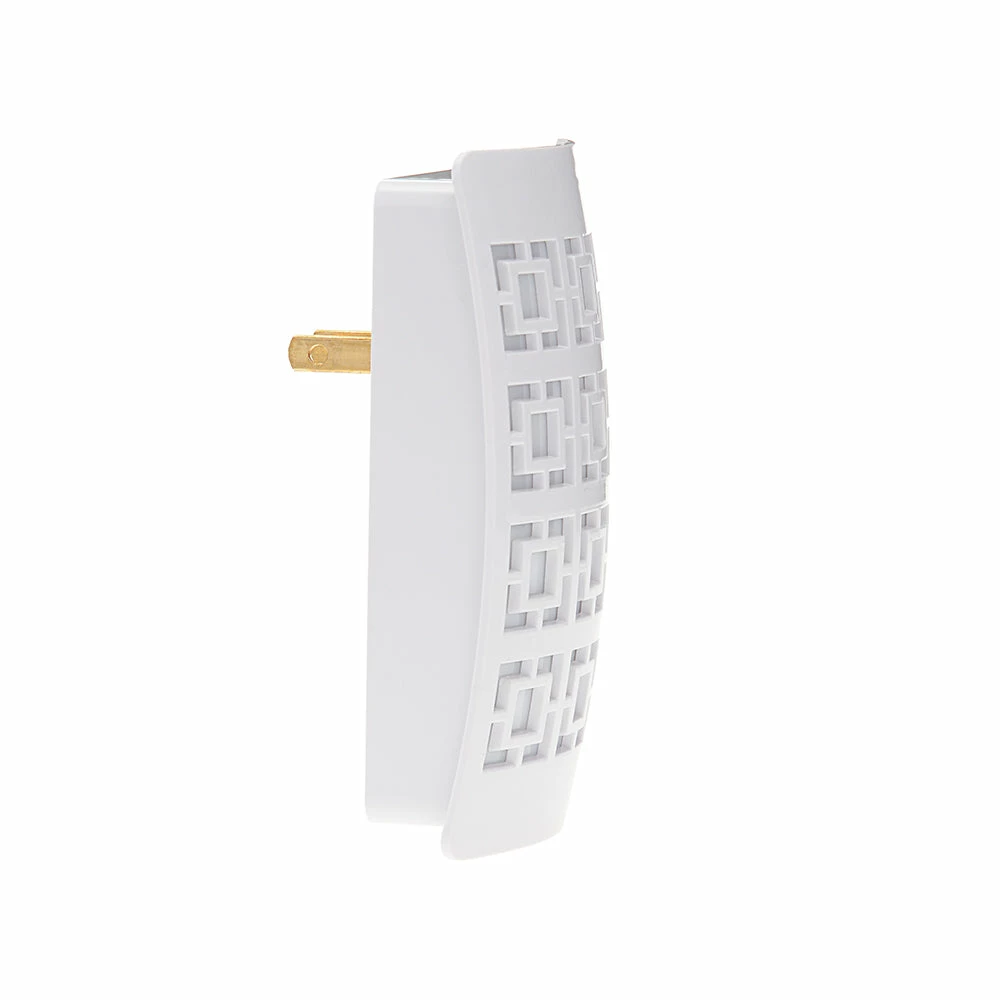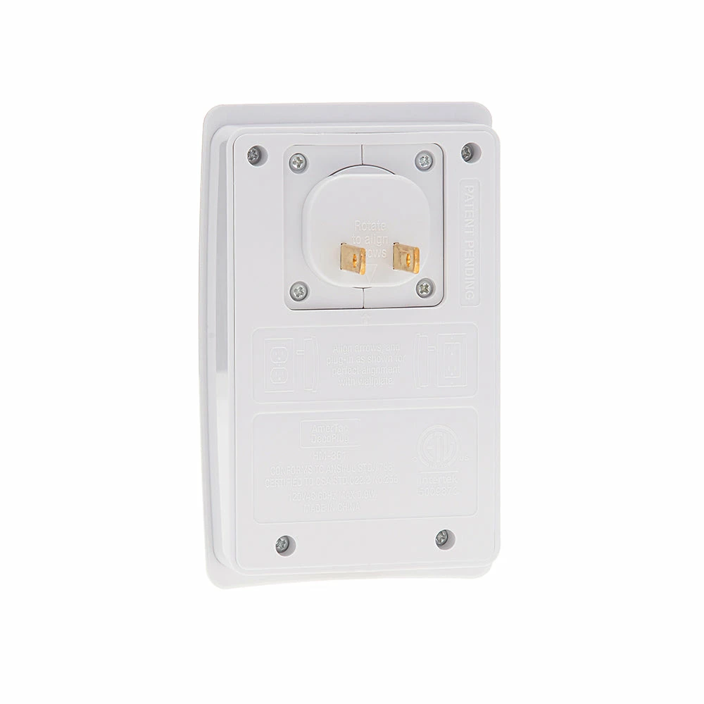 The GeoSquare DecoPlugTM Night Light is a stylish way to beautify your unused outlet plugs. Our Patent Pending innovation perfectly centers this night light over your wallplate, unlike others that sit high and block your second outlet, If you need access to a plug, simply rotate the night light up or down to expose the outlet, Its front-facing frosted lens will diffuse the light evenly into your room. The energy-efficient LED bulb casts a relaxing, warm and soft glow. The automatic dusk to dawn control saves money and energy by operating the light only in the dark.