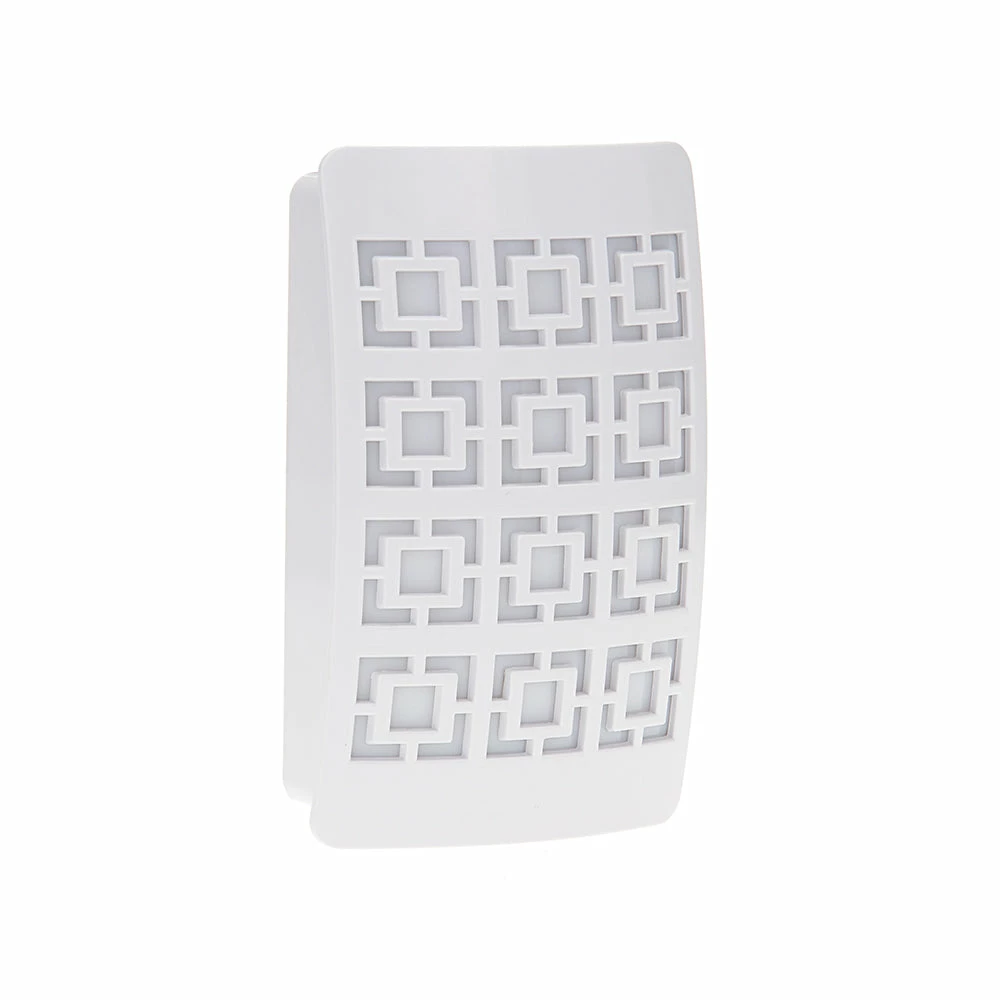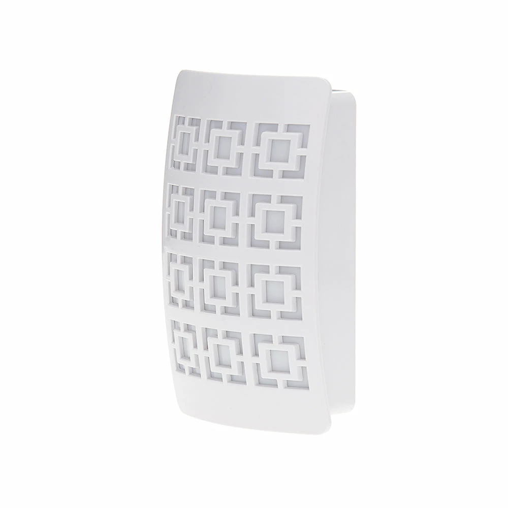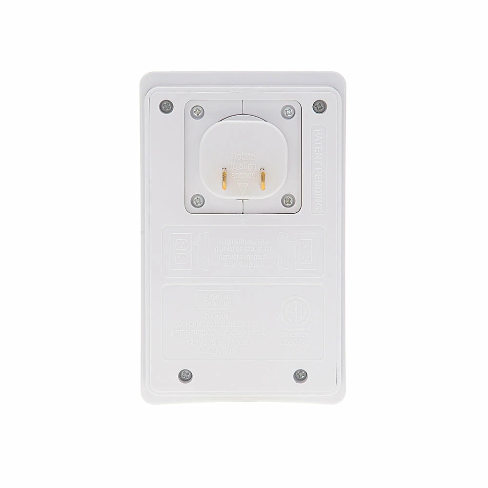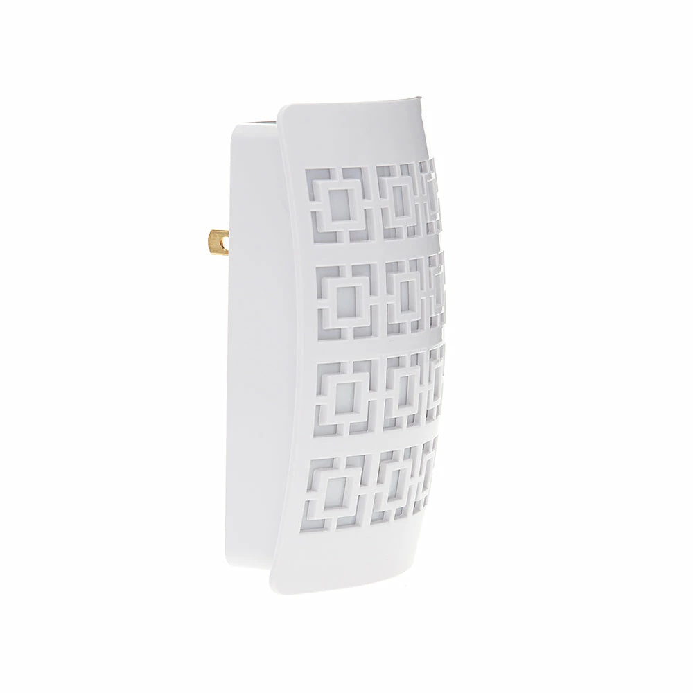 The GeoSquare DecoPlugTM Night Light is a stylish way to beautify your unused outlet plugs. Our Patent Pending innovation perfectly centers this night light over your wallplate, unlike others that sit high and block your second outlet, If you need access to a plug, simply rotate the night light up or down to expose the outlet, Its front-facing frosted lens will diffuse the light evenly into your room. The energy-efficient LED bulb casts a relaxing, warm and soft glow. The automatic dusk to dawn control saves money and energy by operating the light only in the dark.