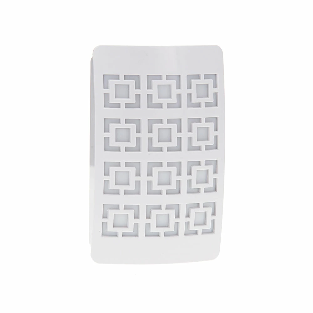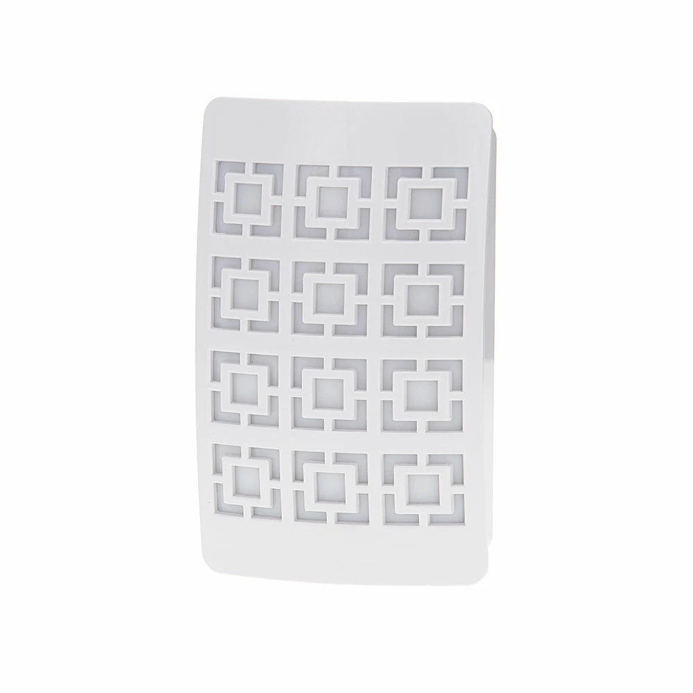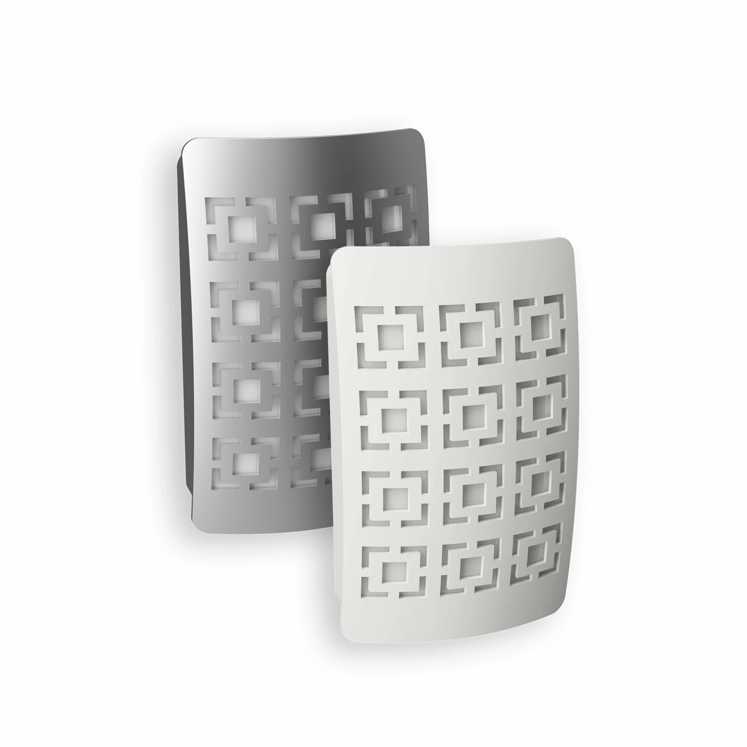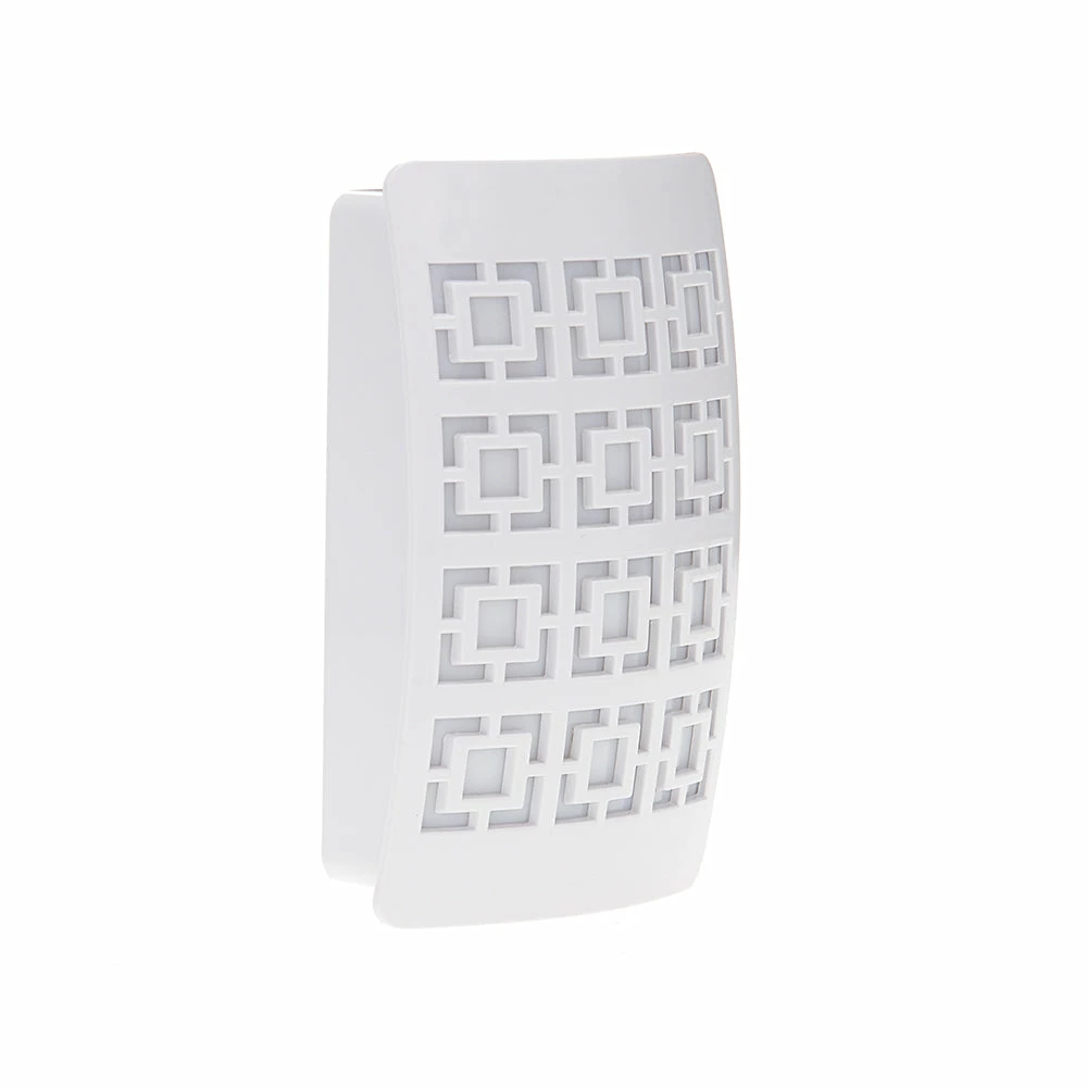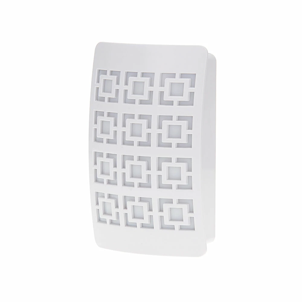 The GeoSquare DecoPlugTM Night Light is a stylish way to beautify your unused outlet plugs. Our Patent Pending innovation perfectly centers this night light over your wallplate, unlike others that sit high and block your second outlet, If you need access to a plug, simply rotate the night light up or down to expose the outlet, Its front-facing frosted lens will diffuse the light evenly into your room. The energy-efficient LED bulb casts a relaxing, warm and soft glow. The automatic dusk to dawn control saves money and energy by operating the light only in the dark.