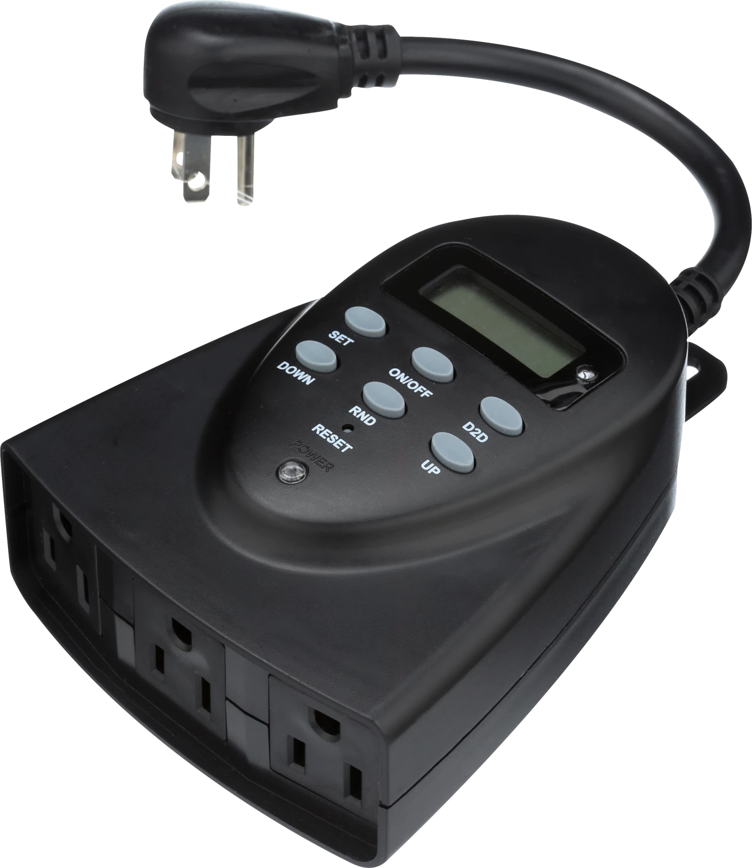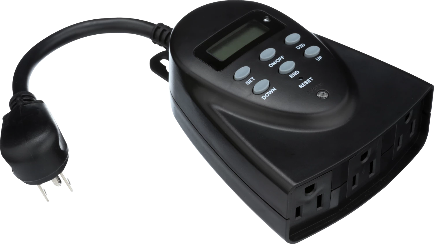 AmerTacβs new outdoor timers are perfect for controlling outdoor lighting, decorations, fountains and more! These durable outdoor timers feature a wide range of technologies to support any application. Easy to use and reliable, this weekly timer can be programmed to turn lights or appliances On/Off at set times throughout the day. It also features a manual override switch for added convenience.