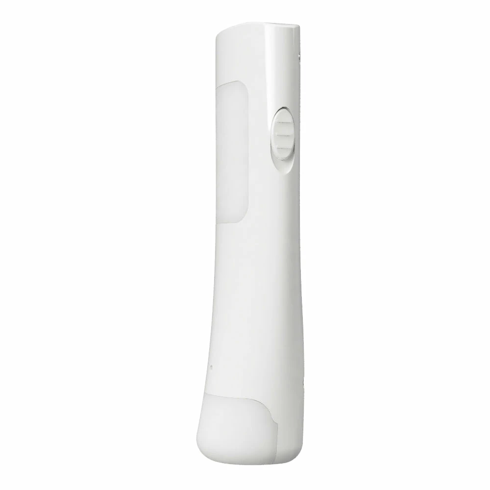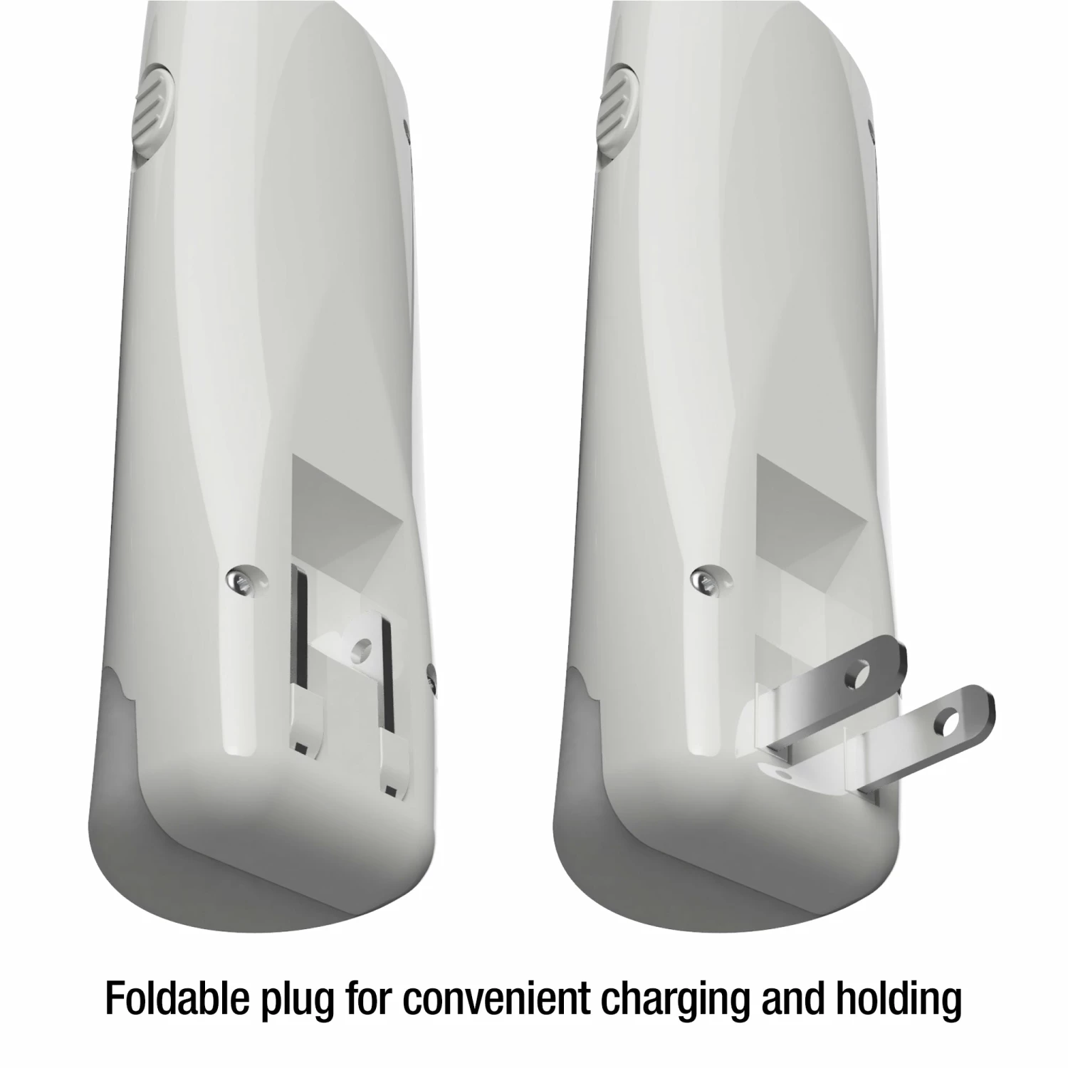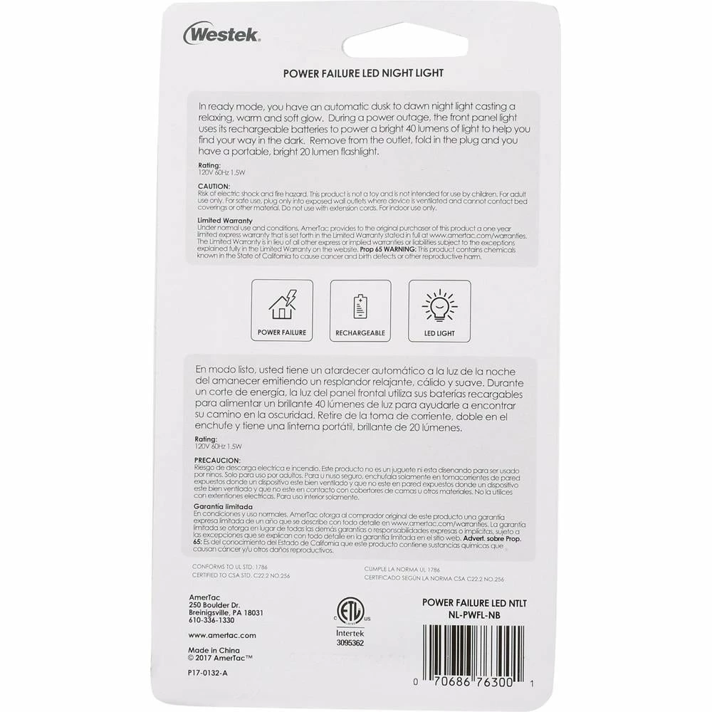 In ready mode, you have an automatic dusk to dawn night light casting a relaxing, warm and soft glow. During a power outage, the front panel light uses its rechargeable batteries to power 40 lumens of bright light to help you find your way in the dark. Remove from the outlet, fold in the plug and you have a portable and bright 20 lumen flashlight.