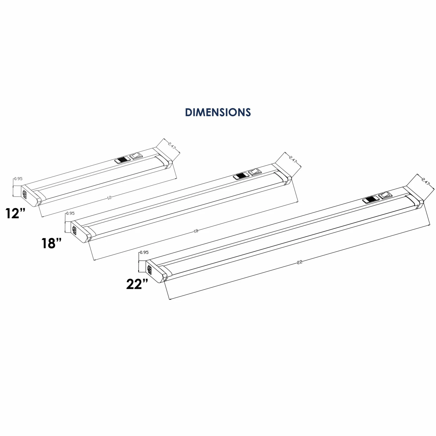 Product Dimensions:Β 2.5″Β W x 1″Β H x 9″ L (9″),Β 2.5″Β W x 1″Β H x 12″ L (12″), 2.5“Β W x 1”Β HΒ x 18″ L (18″), 2.5”Β W x 1″Β HΒ x 22″ L (22″),Β 2.5″Β W x 1″Β H x 32″ L (32″)