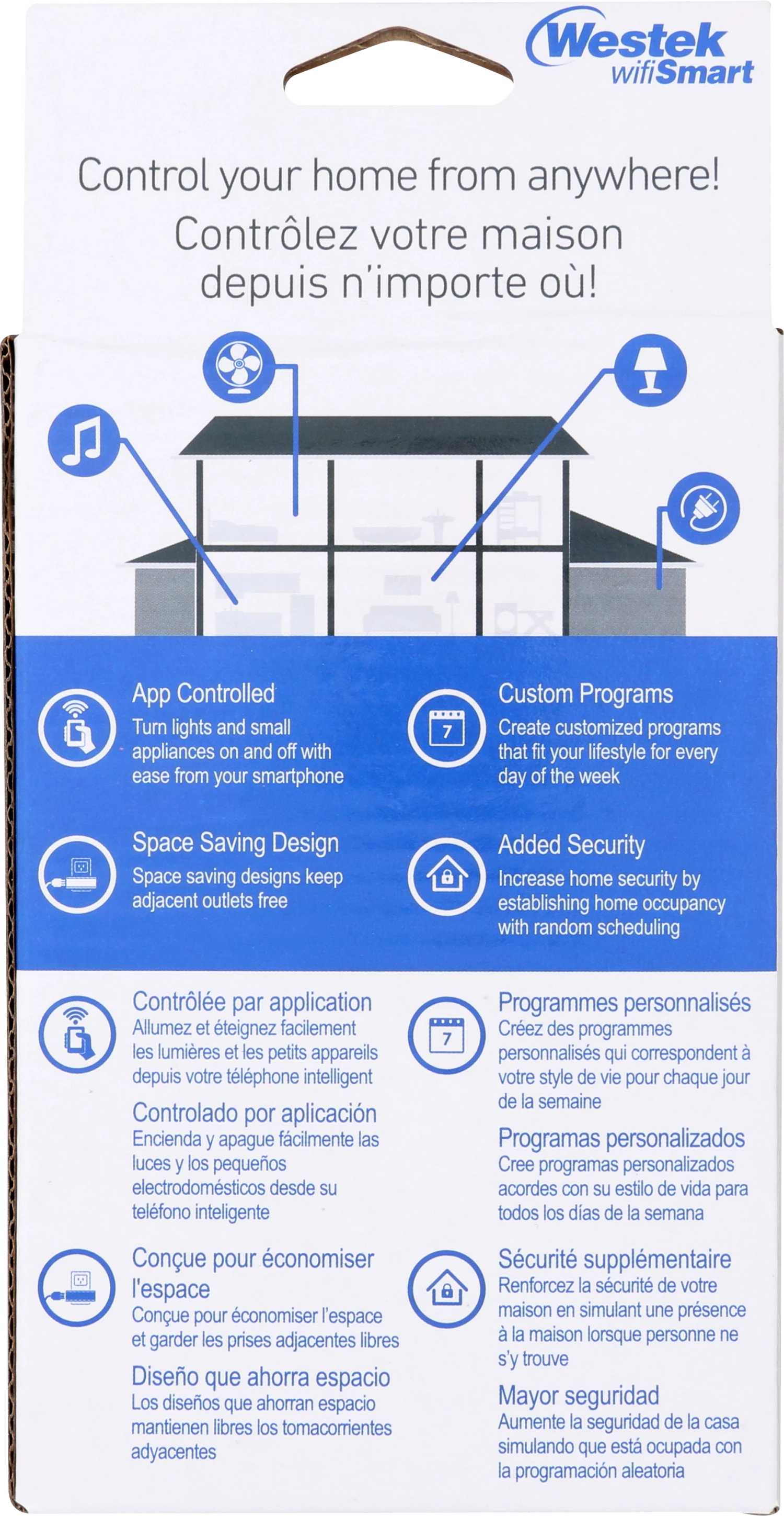 Westek wifiSmart technology items provide the ultimate convenience and flexibility to help you manage lights and devices throughout your home. Rated at 15 Amps, the Indoor 1-Outlet wifiSmart Timer can handle most lights, appliances and even motors up to 1/3 HP.