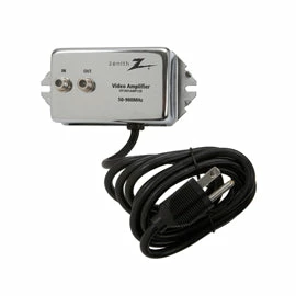 The Zenith 1-Way Signal Amplifier boosts the signal where additional TV sets and VCRs are required without loss of reception quality. It allows you to Amplify the VHF/FM and cable service signals without the normal loss of signal splitting.