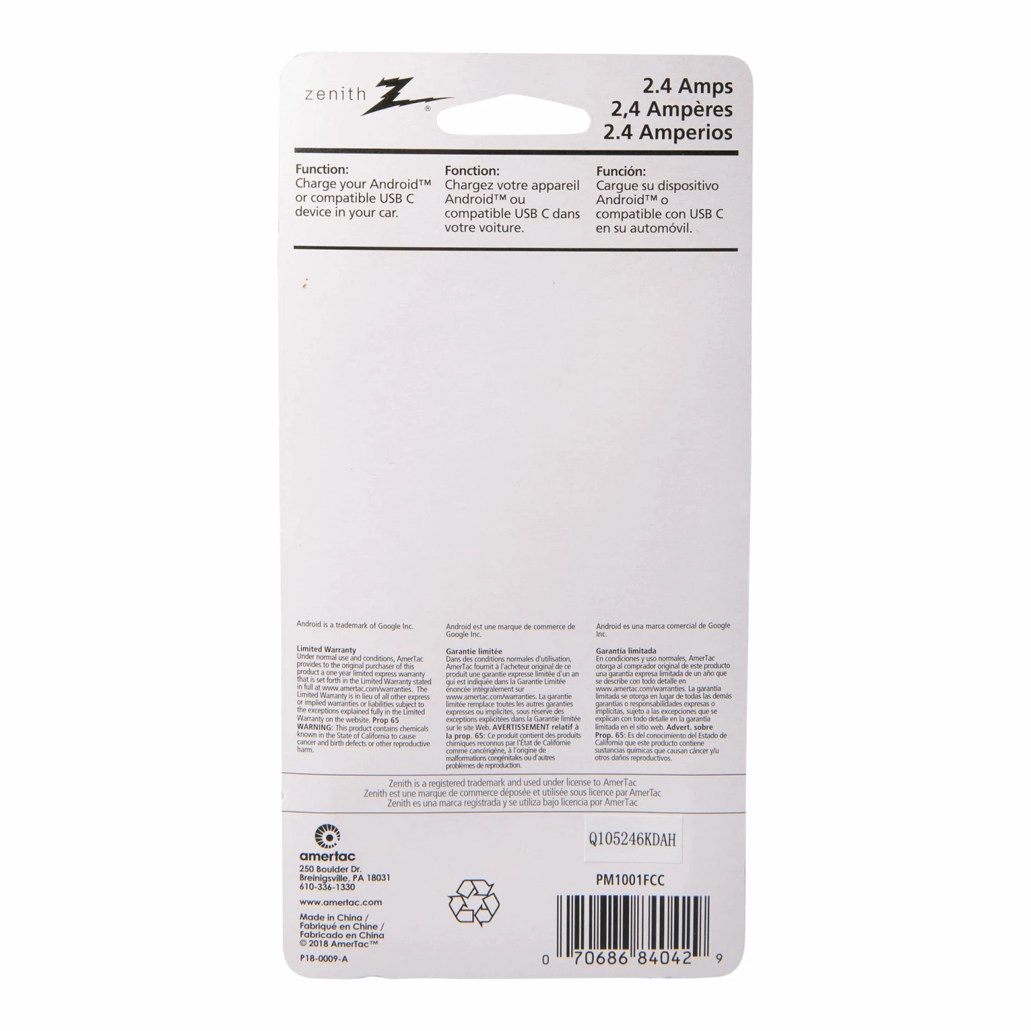 The Zenith Car Charger can be plugged into almost any vehicle’s 12V accessory outlet to simultaneously charge two devices. The USB C tip and added USB port allows you to charge your phone, tablet or other USB C/USB compatible device. Featuring a low-profile charge plug and 3-foot cable length, this charger adds convenience without the bulkiness in your car console.