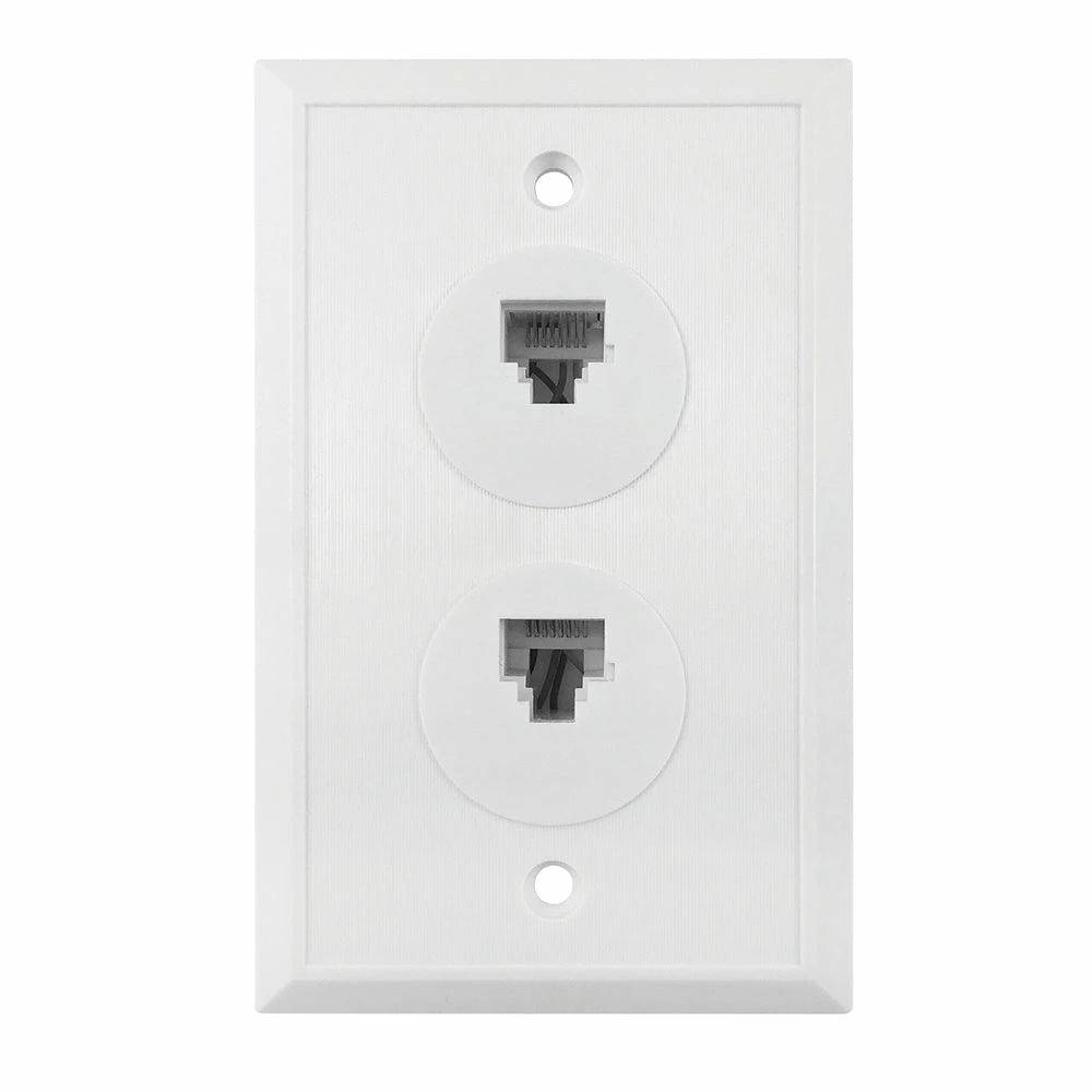 The Flush Mount Ethernet Wallplate with White finish connects two CAT 5/6e Ethernet cable through a wall. The dual inputs allow for increased versatility and the flush mount design ensures an organized and professional look for your Ethernet cables. Screws are included for mounting.