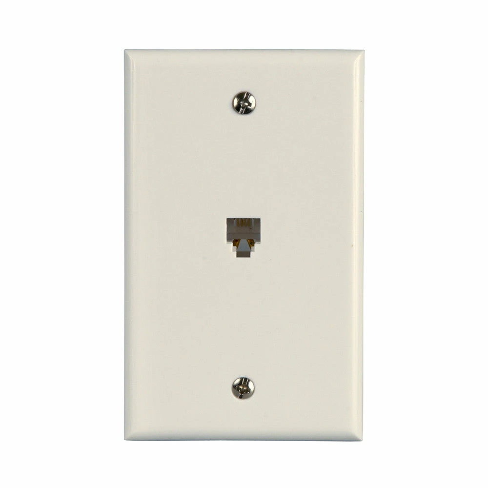 The Flush Mount Telephone Wallplate with White finish allows flush mounted connection of phone line through a wall.