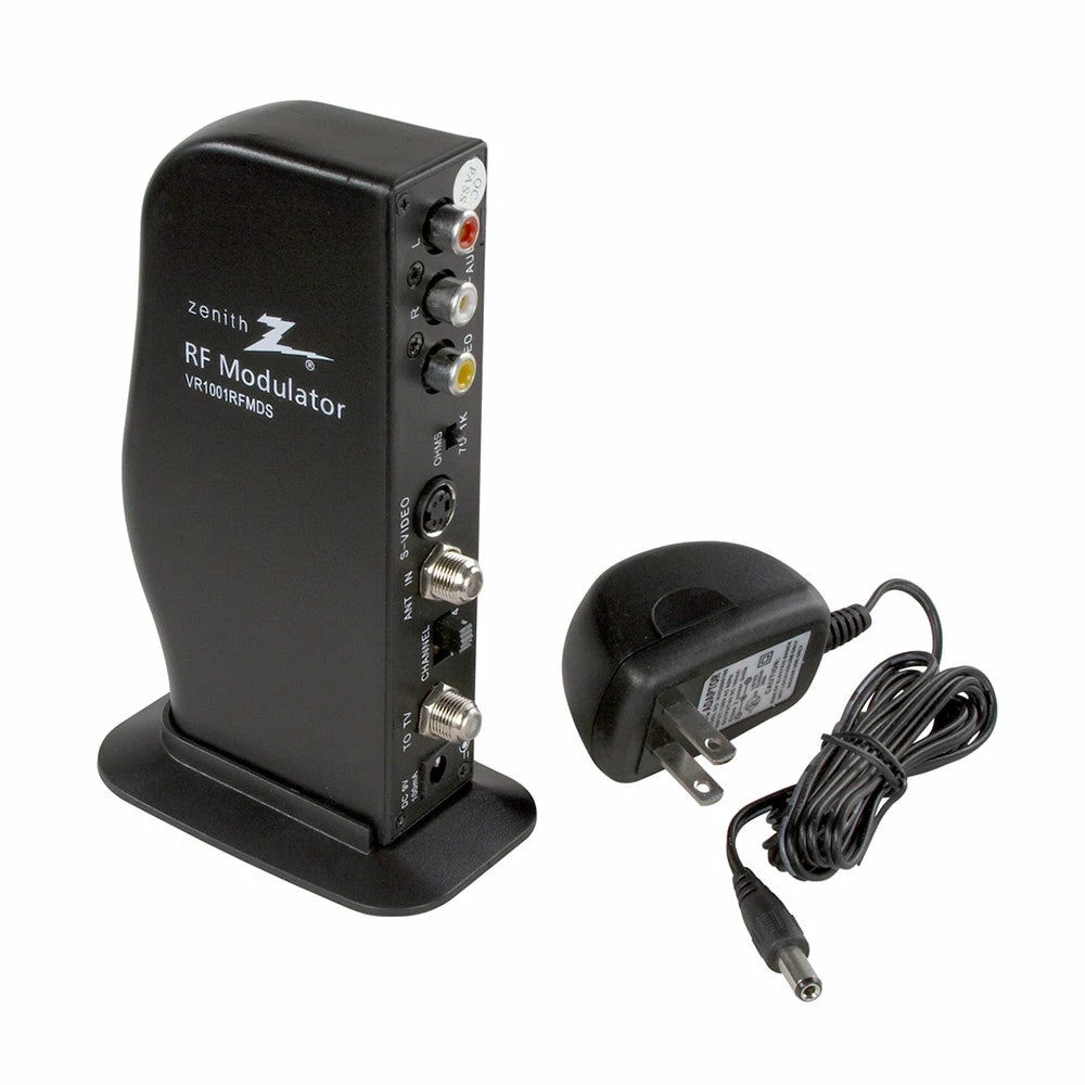The Zenith RF Modulator/Video Converter with S-Video Input connects multiple devices with just 1 coax cable input. This modulator is perfect for your favorite devices like DVD players, VCR’s, cameras, and even gaming consoles. The S-Video input and stereo capabilities work to ensure that your devices provide quality picture and sound.