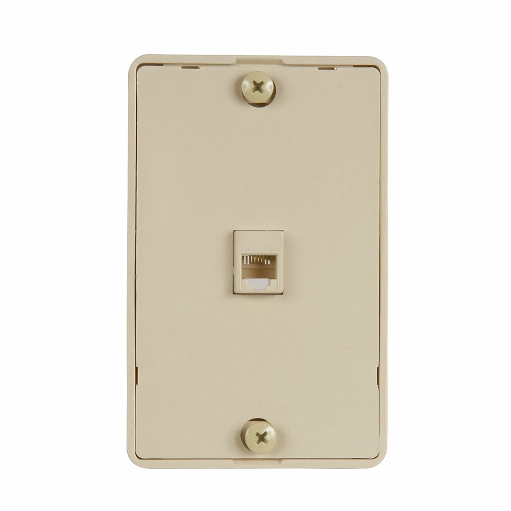 The Zenith Telephone Triplex Wall Jack with Almond finish is utilized to mount wall phones. It includes 3 phone jacks for use with an answering machine or fax in addition to a phone. (Screws are included)